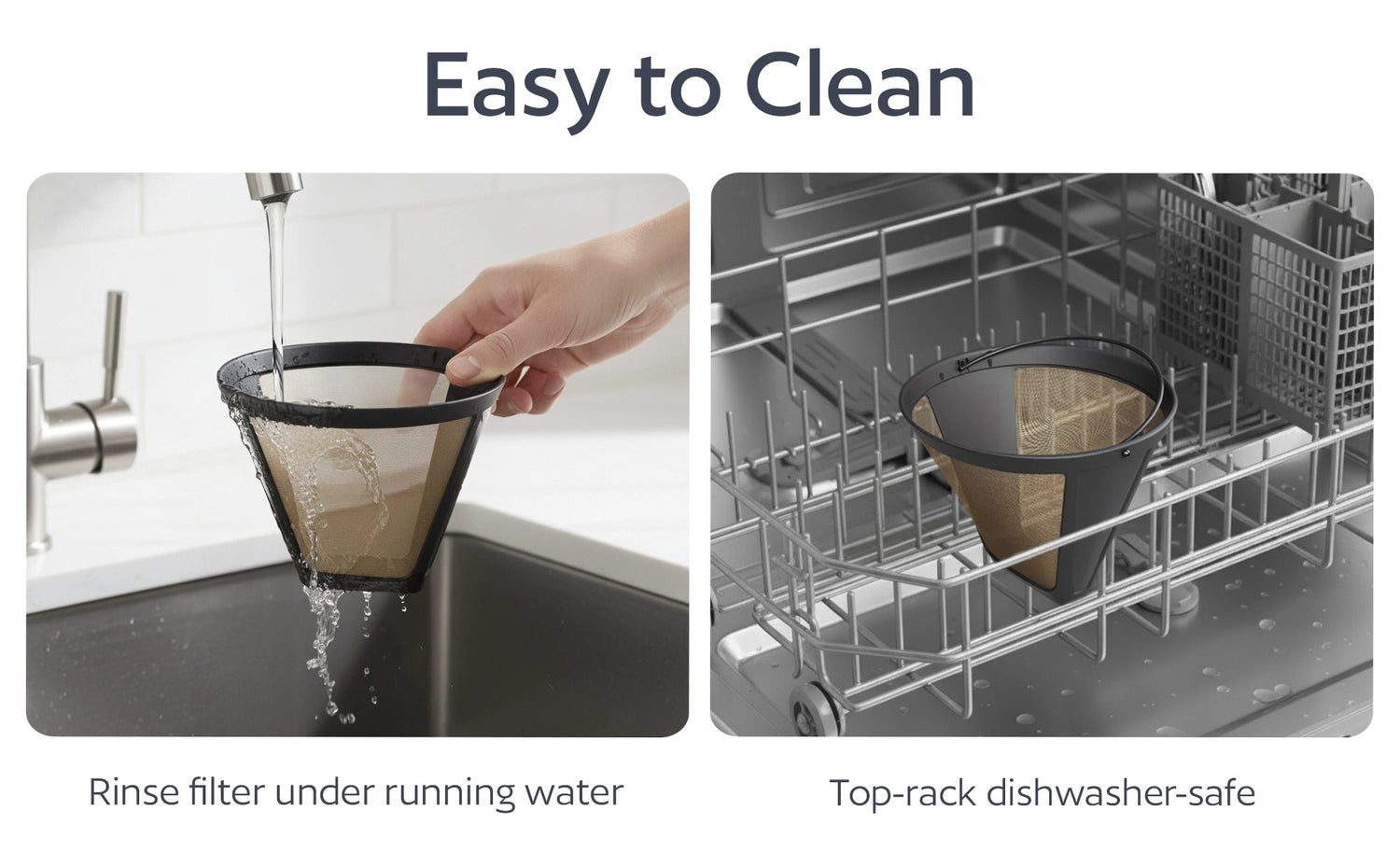 Easy to Clean: Designed for your convenience, this reusable coffee filter is exceptionally easy to clean. Simply rinse it under running water or place it in the dishwasher for a thorough clean.
